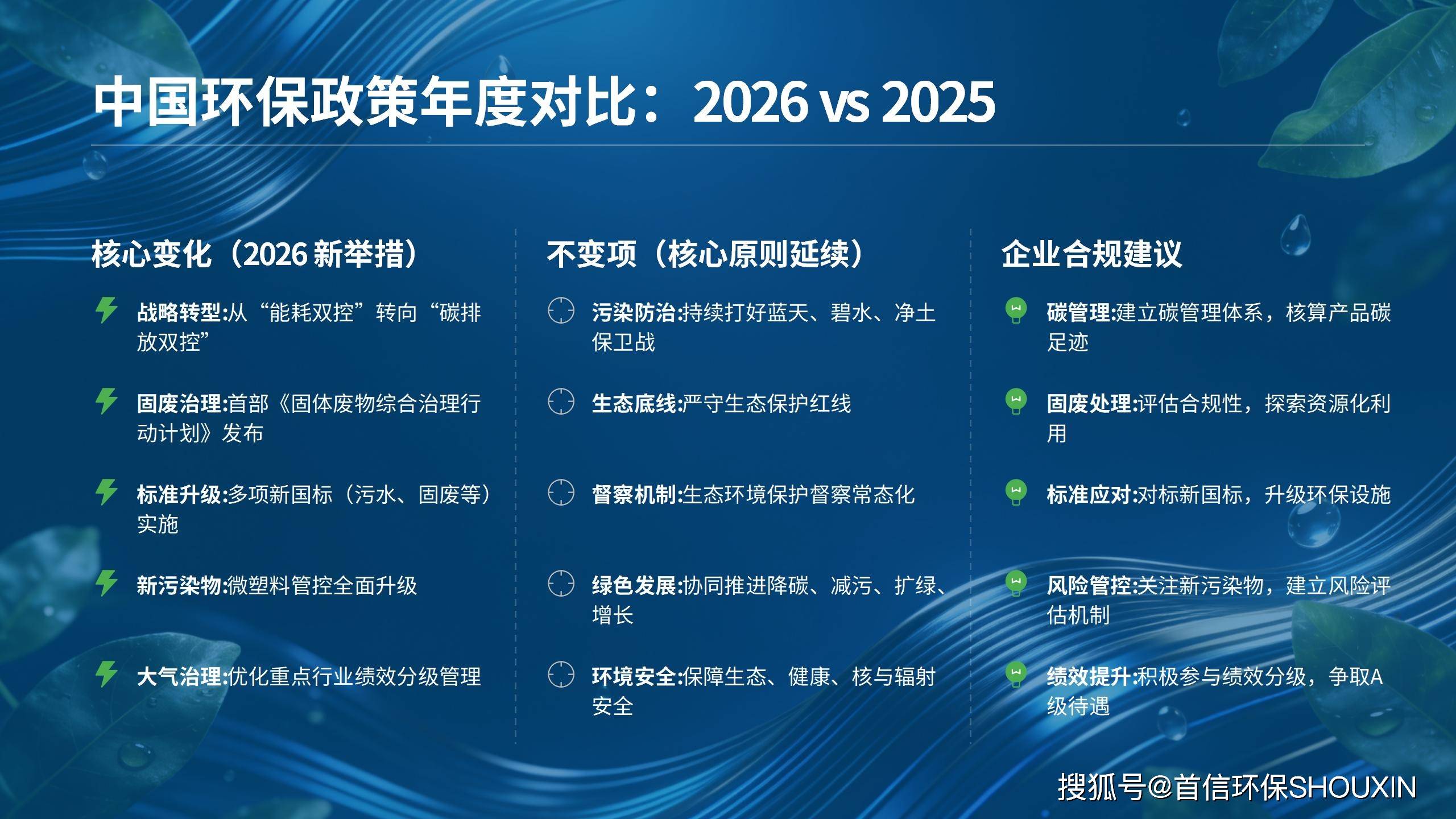 以下是首信环保分析 2026 年较 2025 年中国环保政策的核心变化、不变原则: